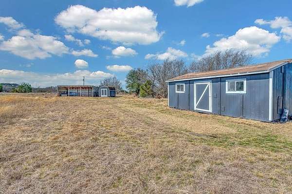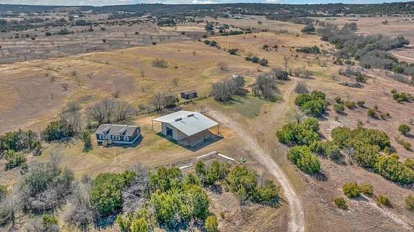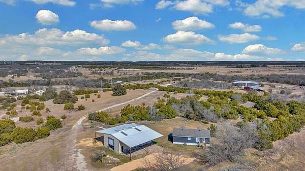 Come experience the perfect blend of comfort, functionality, and country living with this beautiful property situated on approximately 38.37 acre of Texas land. This well-maintained home offers a spacious open-concept layout featuring a large living room that flows seamlessly into the kitchen and dining area. The kitchen provides abundant countertop space, seating options, and a welcoming space for gathering. The main bedroom is generously sized and features a private ensuite bathroom complete with a large vanity, walk-in shower, and separate soaking tub. This property has seen numerous recent upgrades, including a brand-new roof installed approximately 6 months ago, a new central heat and air system with all new copper lines, wiring, and a digital thermostat installed about 4 months ago, fresh interior and exterior paint within the last 6-8 months, and new flooring throughout the living room, bedrooms, bathrooms, and closets. Every bedroom also features new light fixtures along with updated switches and outlets. The impressive 30 ft by 50 ft shop building is built to last, featuring an approximately 10-inch thick concrete foundation reinforced with heavy-duty rebar rated at 6,000 PSI. The shop includes two full-length 20 ft by 20 ft eaves on each side, two 14-foot roll-up doors, a walk-through door, interior lighting, workbenches, and LED exterior lighting. Additional conveniences include two RV septic hookups and two 50-amp RV electric hookups with water access. The property is well-equipped for agricultural or recreational use with over 4,000 feet of water line running throughout the field, two operational water troughs with a third ready for hookup, a 288-foot deep well producing approximately 23 gallons per minute, and a stainless steel pump and improved well lining replaced about 8 years ago. Additional structures include a 36 ft by 14 ft loafing shed with a water tank, a 14 ft by 16 ft storage building, and a 24 ft by 14 ft storage building.