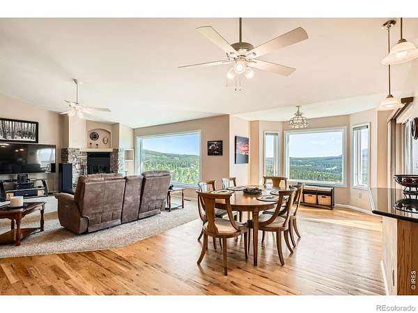 Spectacular Divide views, exceptional layout, private 1.8-acre lot. Conveniently located in the highly-desirable Dory Hill neighborhood with easy access to Golden/Denver/Nederland/Boulder. Beautiful new picture windows look out to Long's Peak, the Continental Divide, and Golden Gate Canyon State Park. Super quiet spot, dark skies, starry nights, plenty of wildlife. Three bedrooms includes large primary suite, walk-in closets, 2 1/2 bathrooms, large dining area, office, laundry all on one level. Open layout leaves no wasted space and makes this a great house to live in. Loads of storage, spacious 3-car garage, and a full unfinished walkout basement with 12' ceilings that's plumbed for an additional bathroom, insulated, and 2 rooms already roughed in. Move-in ready with lots of extras, and some of the lowest property taxes in the state (and the country!) Located in a peaceful mountain community with easy access to hiking, skiing, and historic Black Hawk, this home offers both tranquility and adventure. Don't miss this one!