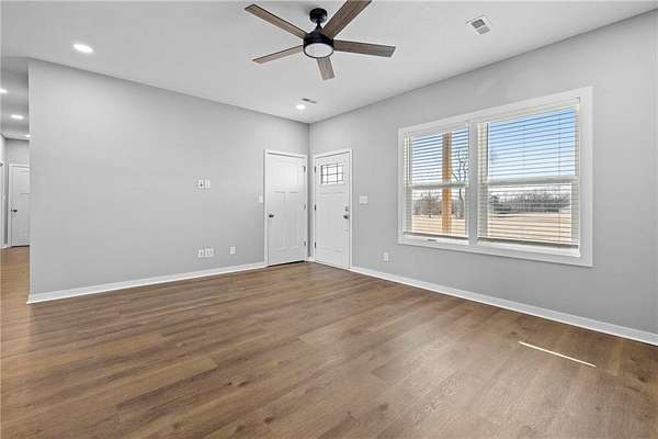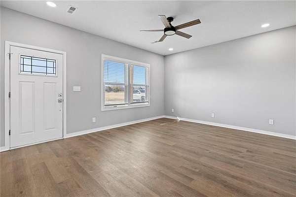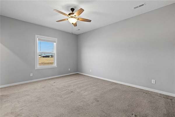 Wonderful 3-year-old slab home on 4.13 +/- acres, conveniently located near Highway 50 for an easy commute. This 3-bedroom, 2-bath home offers a clean, functional layout with an open flow between the living room and kitchen. The spacious kitchen features ample cabinet storage, generous counter space, and an island that provides additional prep space. The primary suite includes a private en suite bathroom and a walk-in closet. Two additional bedrooms and a full bath offer flexibility for family, guests, or a home office. A built-in hallway cabinet includes a hidden motorized drop-down gun storage shelf for secure and discreet storage. With modern finishes and systems that are only three years old, this home offers low-maintenance living on acreage with convenient access to town and major routes.