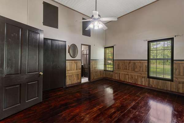 Welcome Home! Leave the stress of work behind and retreat to this peaceful property nestled on over 5 acres. This charming home features 3 bedrooms, 2 baths, original hardwood floors, soaring 12+ foot ceilings, generous storage, a walk-in laundry room, a cozy kitchen and a warm fireplace. Enjoy relaxing mornings and evenings on the expansive covered front and back porch's. Additional structures include a barn, workshop, man cave/ mother-in-law suite and even a scenic CREEK- making this the perfect property for large families who need space to gather and enjoy time together. This one is a must-see in person.Less than 10 min to Hwy 49.
