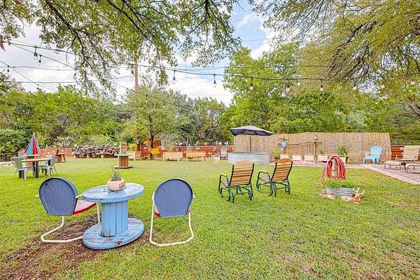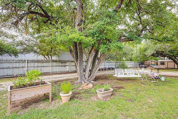 Outdoors, you’ll find a peaceful retreat with mature trees, an expansive yard, and plenty of room to stretch out, play, or simply enjoy the serenity. A cowboy pool adds the perfect touch for cooling off on warm Texas days, while two outside storage sheds convey for added convenience. The property is fully fenced with an electric gate and features a circular driveway for easy access and extra parking.