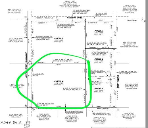 Take 339th Ave south from I10 to Buckeye Rd Go west to 355th Ave go North to Harrison St go West to the parcel.