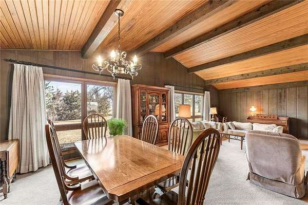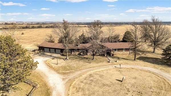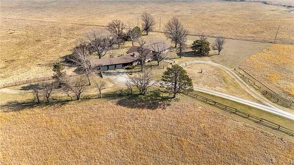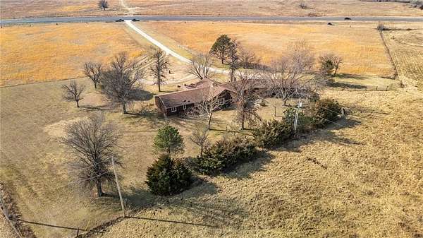 Welcome home to this inviting ranch-style property on 10 beautiful acres, located approximately 5 miles from Yates Center, Kansas. With wide-open grassy land ideal for kids, animals and outdoor activities, this home offers the space and freedom every family dreams of. Featuring 4 bedrooms, 3 bathrooms, and 2,850 square feet of living space, this home is filled with warmth and vintage charm. The cozy double-sided fireplace serves as a central gathering spot, enjoyed from both the living room and den, perfect for family nights, holidays and entertaining. Parents will appreciate the convenience of a paved highway with easy access to nearby towns, while kids will love the room to roam and explore. An attached 3-car garage with breezeway provides plenty of storage for vehicles, bikes and gear, and the in-home storm shelter offers added peace of mind for your family's safety. With spectacular views, functional space and a setting designed for making memories, this property is a wonderful place to put down roots and enjoy country living with everyday convenience.