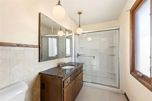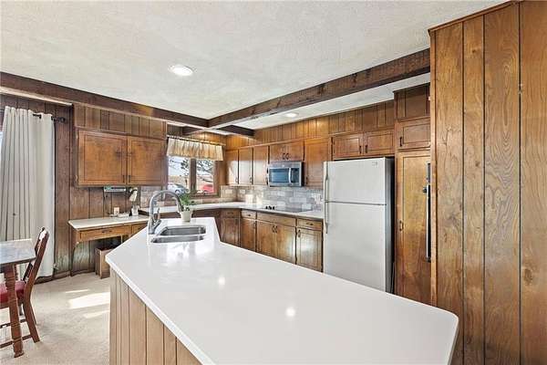 - Ceiling Fan(s), Kitchen Island, Stained Cabinets