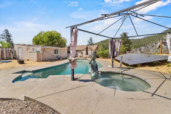 Est $2,221/moCome and tour this home located on a private 2 acre lot within 2 minutes to town! This property features an inground swimming pool, a barn, greenhouse, a home with lots of potential, a paved driveway, fully fenced for your security, and don't forget about the solar! Fully owned solar system, which keeps the power bill extremely minimal. This 3 bedroom 2 bath home features just under 1600 sqft, a woodburning stove, a single car detached garage, a courtyard to hang out in and an opportunity to come in and make it your own with a few finishing touches! Don't wait to view this special property, it won't last long.