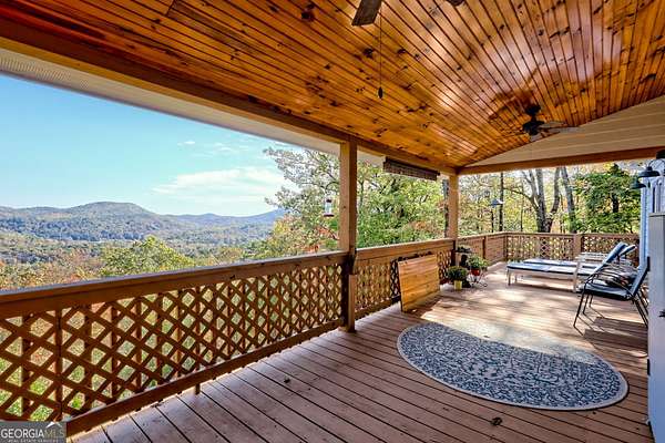 Nestled on 3 acres in the rolling hills of Rabun County, this well-maintained home overlooks the dramatic rise of Glassy Mountain, offering unobstructed long-range views that stretch across the Blue Ridge landscape. From the deck, watch sunrises light up the peaks or evenings settle over the valley-ideal for those quiet mornings with coffee or lively gatherings under the stars. Step inside to warm wood finishes on floors, walls, and ceilings that bring the surrounding forests right into the living spaces. The open layout flows from a spacious great room with a stone fireplace to a kitchen equipped for family meals, plus three bedrooms and two baths that sleep up to eight comfortably. Upstairs, a loft area doubles as a play space or extra sleeping nook, while the lower level opens to a covered patio perfect for grilling. Outside, the low-maintenance exterior-think hardy siding and native landscaping-lets you spend more time enjoying the land than tending it. Explore your own wooded trails, spot deer at dawn, or fire up the fire pit for storytelling sessions. It's the kind of setup that turns weekends into full escapes, with room for kids to roam or adults to unwind. Location puts adventure at your doorstep. Just minutes from Lake Burton's 2,800 acres of clear blue-green water, launch a kayak for a paddle, cast a line for trout (the lake holds Georgia records for spotted bass and yellow perch), or rent a pontoon to tube and ski along 62 miles of shoreline. Rabun County's three state parks-Black Rock Mountain, Moccasin Creek, and Tallulah Gorge-wait nearby for hikes to waterfalls like Minnehaha Falls or climbs to Rabun Bald's 4,696-foot summit, where panoramic vistas rival your own backyard view. In Tiger, catch a double feature at the retro drive-in theater, sample wines at Tiger Mountain Vineyards, or browse the farmers market for fresh mountain produce. Clayton's downtown, a quick 15-minute drive, delivers easy shopping at boutiques and galleries, plus over 40 spots for meals-from farm-to-table Southern fare at The Dillard House to casual bites by the Tallulah River. Waterfall Club's golf courses and spa are right around the corner for a polished day out, and the Chattooga River beckons for guided rafting floats through wild rapids. This spot captures the draw of a North Georgia vacation home: close enough for Atlanta getaways (under two hours), yet worlds away in a county laced with 38 waterfalls, blooming rhododendrons in summer, and fiery fall foliage. It's where lake days blend with mountain hikes, and that tremendous Glassy Mountain view becomes your daily backdrop. Claim your slice of Rabun County's endless outdoors.