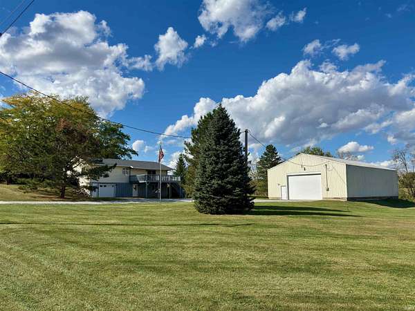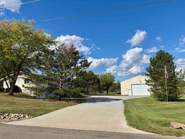 FULLY RENOVATED. FARMLAND INCOME. PRIVATE SETTING ON 6+ ACRES. This 4-bedroom, 2-bathroom home offers 2,880 square feet of updated living space on a quiet 6+ acre lot. Renovated top to bottom in 2023, the interior features all-new flooring, trim, lighting, a custom tile shower, and modern finishes throughout. The open-concept layout feels bright and welcoming, with a kitchen that includes all appliances and a breakfast bar. Major mechanical updates include a new roof, furnace, and hot water heater (2023), plus a new water softener installed in 2024--so all the big-ticket items are already done. Step outside to enjoy beautiful sunrises from the oversized deck, or take advantage of the 40x62 pole barn with a concrete floor, full electric, and a 240V hookup--perfect for workshop needs, equipment, or storage. An oversized heated garage adds even more space and flexibility. The home is surrounded by mature trees that provide natural shade and privacy, and a portion of the acreage is currently farmed--bringing in extra annual income with minimal effort. This is turnkey country living at its finest--modern, functional, and thoughtfully updated inside and out. Schedule your showing today!