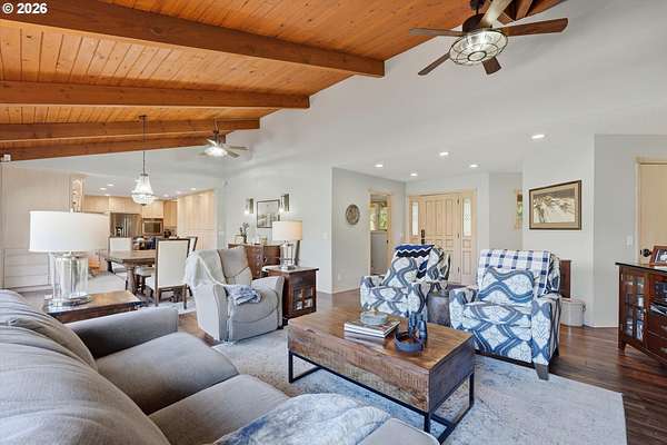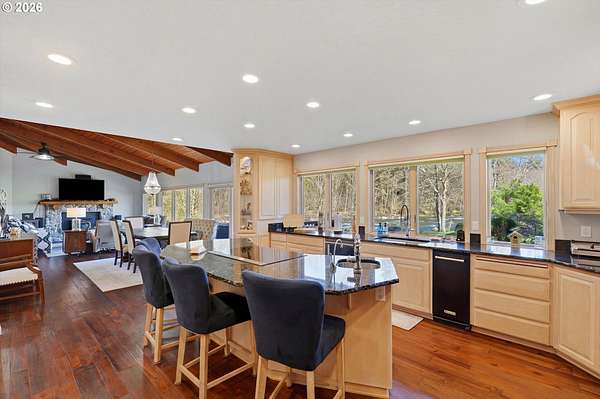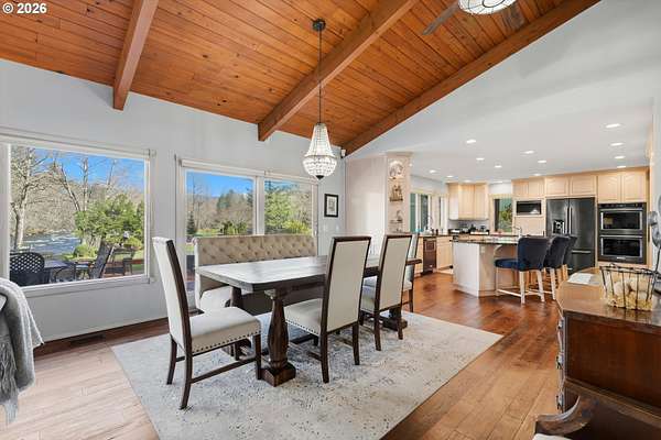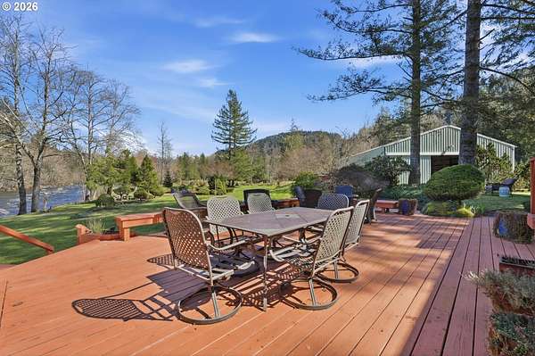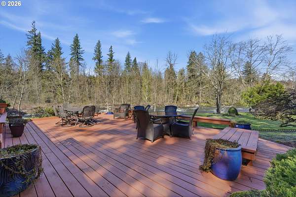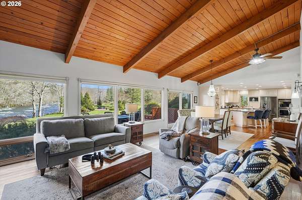 Experience refined riverfront living on 9.76 acres across two private parcels, where modern upgrades meet breathtaking natural beauty. This beautifully updated 3,386 sq ft residence offers a sophisticated blend of comfort and craftsmanship, with expansive river views that transform every window into a living work of art. Sun filled interiors, refreshed finishes, and generous living spaces create an atmosphere of quiet refinement. The estate's nearly ten acres provide a rare sense of scale and exclusivity. A 60*36 equipment building and 40*60 barn with stalls offer exceptional versatility for collectors, equestrians, or those seeking a premier workshop or storage solution. Thoughtfully designed outdoor amenities - including a charming chicken coop, garden space, and two serene ponds - elevate the property into a self-sustaining retreat.Recreation here is effortless and exceptional. Enjoy private on-property fishing, peaceful mornings spent bird-watching along the river, and daily encounters with wildlife that make the land feel alive. The expansive deck overlooking the water becomes your personal sanctuary for sunrise coffee or sunset gatherings.For those who crave adventure, Mt. Hood is only minutes away, offering world-class skiing, snowboarding, hiking, and mountain biking. With PDX within easy reach, this estate delivers the perfect balance of seclusion, luxury, and accessibility.Opportunities to own a riverfront property of this caliber - with acreage, modern upgrades, and unmatched views - are extraordinarily rare. This is more than a home; it's a legacy-level retreat designed for those who appreciate beauty, privacy, and the finest elements of Pacific Northwest living.