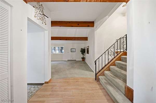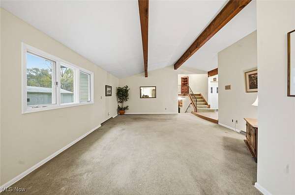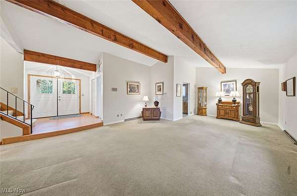 A rare 4-level split in Medina offering space, privacy, and incredible potential-set on 2 beautiful acres just minutes from shopping and Buckeye Woods Park. With over 2,000 sq. ft., this well-cared-for home with brand new furnace gives you room to spread out in a layout that's both functional and full of opportunity. The main level features vaulted ceilings with exposed beams and a large, bright living room that makes the home feel open and inviting from the moment you step inside. On the lower level, you'll find a spacious family room with a cozy wood-burning fireplace, perfect for movie nights or relaxing on chilly evenings. An additional rec room with second kitchen space adds even more flexibility-ideal for entertaining, multi-generational living, or creating a private guest or teen suite. The bedrooms are exceptionally large, offering the kind of space rarely found today, and the home includes two full baths that are clean, well maintained, and ready for simple updates if desired. A hidden bonus: carpet on the main floor and upstairs bedrooms is covering beautiful hardwood floors, waiting to be uncovered. Outside, your septic system is getting an update! You will love the side-entry garage, a turn-around driveway, and an impressive huge outbuilding perfect for storage, hobbies, vehicles, or workshop needs. The full 2 acres provide privacy, room to play, garden, or simply enjoy the peaceful surroundings. Well loved, solid, and full of possibilities-this Medina home is the rare combination of acreage and square footage buyers are searching for.