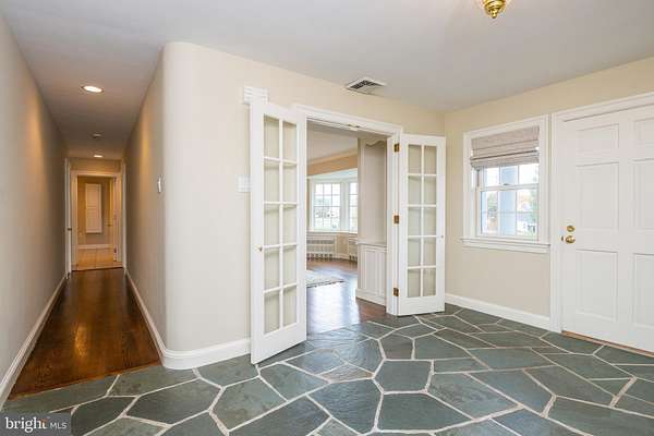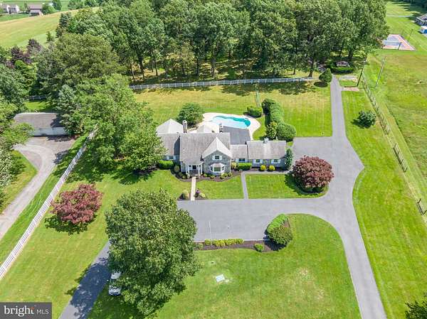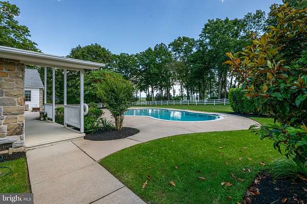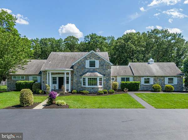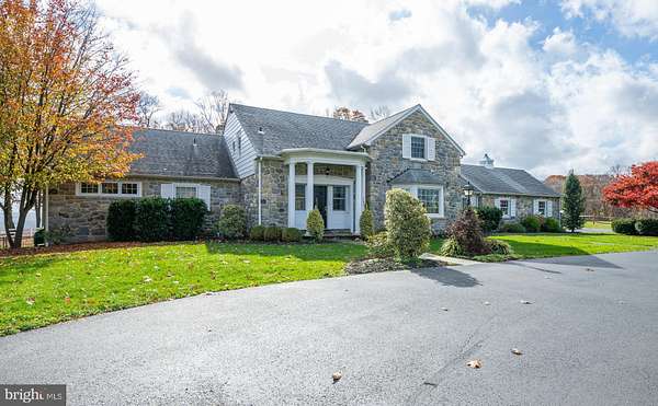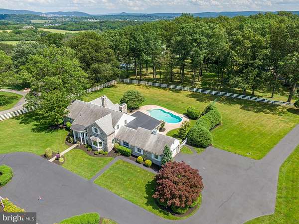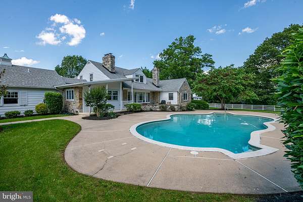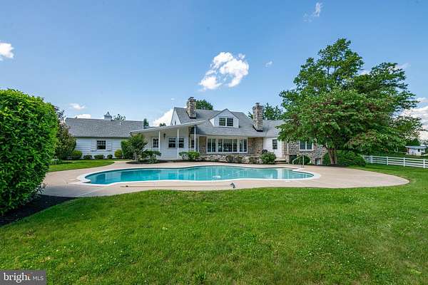 Amazing stone 1 1/2 story cape in Wilson School District on 1.83 acres with an inground pool and main floor primary ensuite! Enter a circular driveway to a front covered porch and into a large foyer with slate flooring and coat closet. The formal dining room comes with hardwood flooring, French doors, two corner built-in cabinets and a large bay window overlooking the front yard. The living room is spacious with hardwood flooring and has a fireplace with mantle, built-in bookshelf and a wall of windows looking out over the pool and rear yard. A gorgeous kitchen, with stainless steel appliances, a large center island with seating, tile flooring, lots of countertop and cabinet storage, built-in desk area, access to the rear patio and a breakfast nook area. There are two bedrooms on the main floor, both with hardwood flooring and their own private bathroom, as well as a powder room and large mud room with tile flooring, sink and cabinet storage and built-in bench. The second floor holds two more carpeted bedrooms and a full hall bath. The walk-out lower level has the 2nd fireplace in the huge rec room, a wet bar with storage, an additional room can be used as an office/bedroom and there is a powder room. The rear yard offers hours of enjoyment with a covered patio and large in-ground pool with a new childproof safety fence. Attached 2-car garage, setup to add Tesla charging station. 2-zone heat and large fenced yard are just a few amenities. Close proximity to the Blue Marsh Dam, Hiking and Biking Trails, as well as shopping, restaurants and schools. Don't miss out on this one!