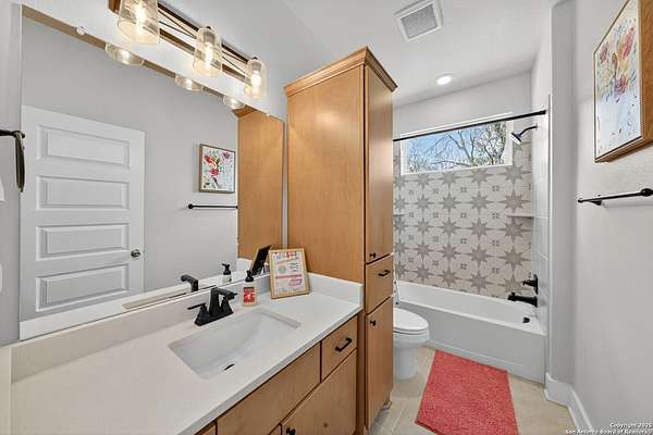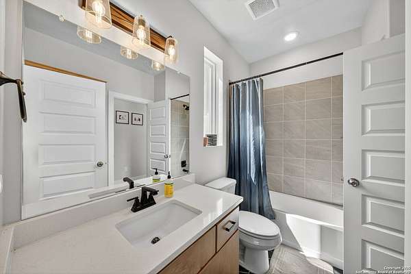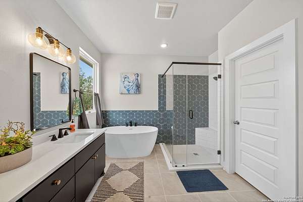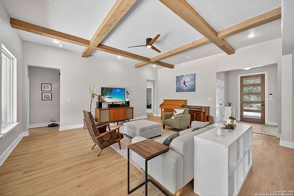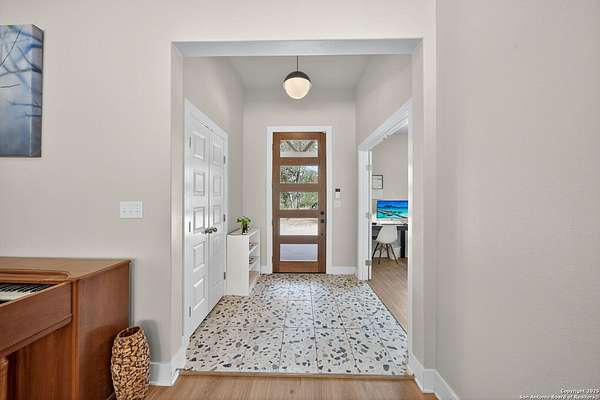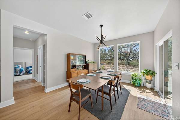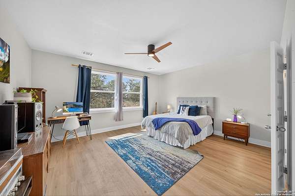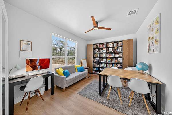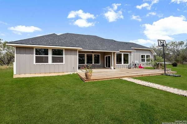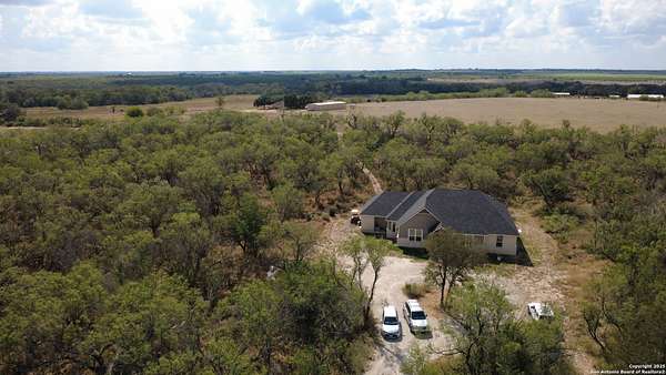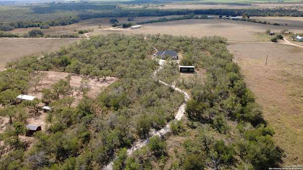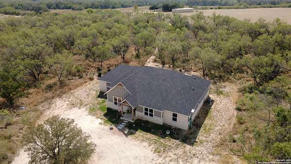 Peaceful country living on 11.5 acres in this custom 2024 Tilson Canyon D. Thoughtful 5 bed, 3 bath design with an open layout, Drift of Mist walls, and Springfield Oak LVP flooring. The chef's kitchen features Espresso maple cabinets, Snow Peak quartz counters, and Retro Cube tile. The primary suite offers a freestanding soaking tub, walk-in shower with designer tile, and dual vanities. Energy-efficient upgrades include foam insulation, 15 SEER HVAC, and Low-E windows. Outside, enjoy Acme Winterstone brick, Dorian Gray board-and-batten siding, a covered back porch, and a freshly laid road base leading to the home-just minutes from Devine and only 36 miles (under 40 minutes) to Downtown San Antonio via I-35. A move-in-ready 16X40 insulated office building is included with the sale. Fully finished with electrical, high ceilings (9-11 ft), big windows, pier-and-beam foundation, and plumbing already roughed in. Features a large open room, private office/bedroom, and a bathroom space with included fixtures (toilet, sink, shower insert, tile) ready to be installed-perfect for a home office, studio, guest space, or multi-generational use. Seller is a licensed Texas real estate sales professional.