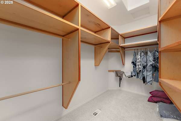 - Ceiling Fan, Garage Door Opener, High Ceilings, Laundry, Skylight, Tile Floor, Wallto Wall Carpet