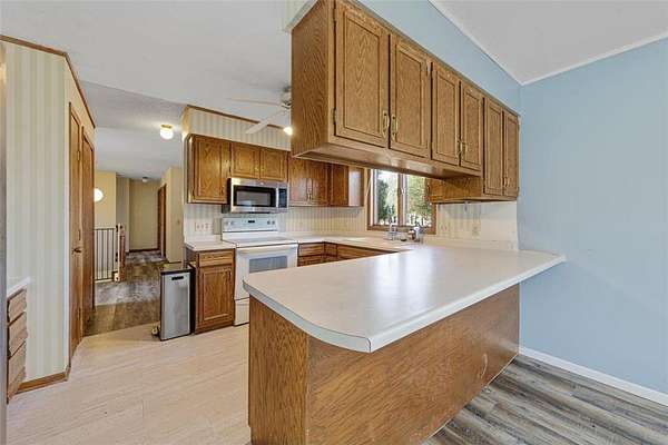 Welcome home to this beautifully updated 3-bedroom, 3-bathroom property set on a private 2-acre lot on the outskirts of Mankato. This home offers the perfect combination of comfort, space, and country living, just a short distance from town. The main level features an open-concept living area with a fireplace and access to a large deck overlooking the scenic backyard. The kitchen and dining area flow into the living room, creating an inviting space for gatherings. The spacious primary suite includes its own private bathroom, while an additional full bathroom on the main level provides convenience for family and guests. The walk-out lower level offers even more living space with a large family room, a full bathroom, and plenty of natural light--ideal for a recreation area, guest space, or home office. A tuck-under garage provides easy access and extra storage. Recent updates include new flooring throughout and a newer septic system (2020). With 2 acres of open space, mature trees, and quiet surroundings, you'll love the privacy and possibilities this property offers. Enjoy the best of both worlds--peaceful country living with quick access to Mankato's shopping, dining, and schools.