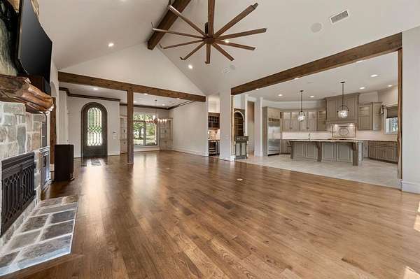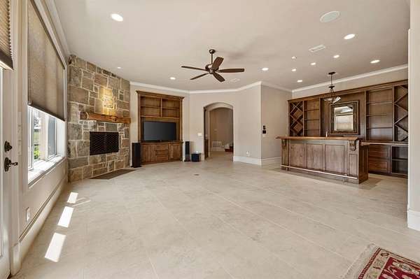 - Built-In Features, Built-In Wine Cooler, Central Vacuum, Decorative Lighting, Double Vanity, Eat-In Kitchen, Flat Screen Wiring, Granite Counters, High Speed Internet Available, Kitchen Island, Natural Woodwork, Open Floorplan, Pantry, Smart Home System, Sound System Wiring, Vaulted Ceiling(s), Walk-In Closet(s), Wet Bar