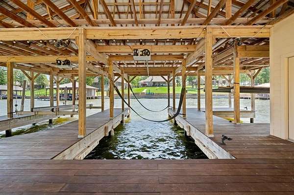 BELOW APPRAISED VALUE this DREAMERS lakeside paradise is a MUST see in the exclusive Brown's Landing gated community, where luxury meets adventure on Lake Palestine! Stunning 2.1-acre estate, with 442 ft of pristine shoreline, invites you to dive into a lifestyle filled with sun, fun, & relaxation--complete with a freshly reinforced bulkhead! Be wowed by the bright living area, soaring vaulted ceilings, & cozy fireplace perfect for chilly evenings. Open layout flows beautifully into formal dining room & gourmet kitchen featuring oversized island--ideal for whipping up delicious meals & hosting unforgettable parties! Picture sipping your morning coffee on your covered patio, warmed by wood-burning fireplace, as you soak in breathtaking sunrises over the shimmering lake. Need a cozy hangout? Versatile bonus room with captivating views is perfect for family meals or lazy afternoons. Primary suite is a spacious sanctuary boasting an impressive bathroom with coffee bar & private access to backyard. Thoughtfully designed lower level is an entertainer's dream, featuring extra living area with a warm fireplace, a game room with pool table, bar for mixing up your favorite drinks, & high-tech media rm with updated Full Swing golf simulator for year-round fun! Plus, 3 additional bdrms, 2.5 baths, & loads of storage for all your toys await. Step outside to your lower patio & embrace blissful waterfront living with innovative bug misting system--no pesky bugs here! Your 3-stall boathouse with stunning Garapa Brazilian hardwood deck & fresh water access is ready for fishing, boating, & skiing. This extraordinary property blends luxury, comfort, & playfulness, featuring a newly upgraded Crestron home automation system, Hickory wood flooring, Generac Whole House 36KW backup generator, & 2 buried propane tanks(1000 & 500). Featuring adaptable site designs, this estate is a true gem waiting for you to claim it! DIVE IN & make it yours! Fresh APPRAISAL completed OCT 2ND & ready to share.