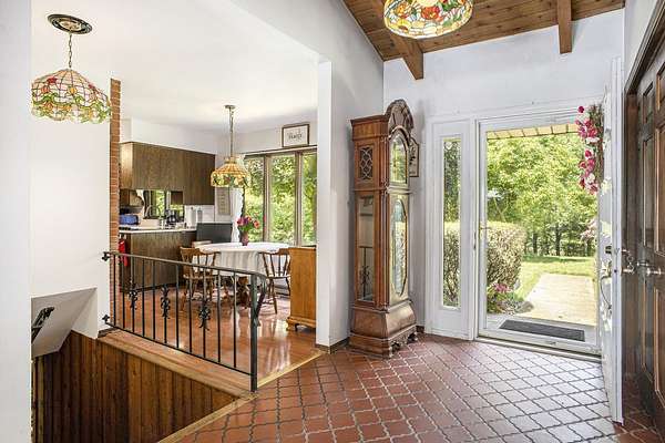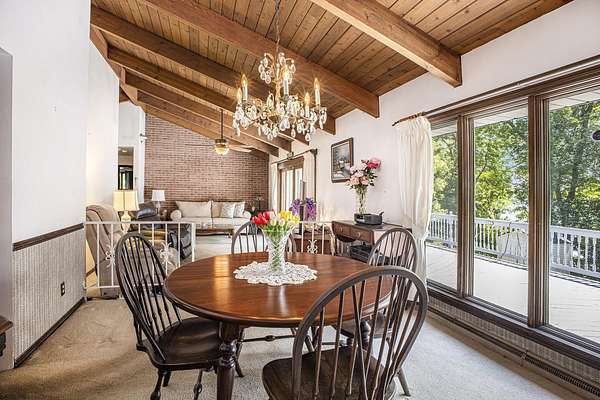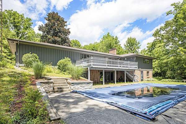Set in a private, secluded setting is this spacious ranch-style home with 3,200+ sqft of living space, featuring 6 bedrooms, 3.5 baths, and over 300 feet of waterfront on Mill Pond! Recent improvements include a geothermal HVAC system, updated kitchen, new septic system and roof, freshly painted exterior, a new garage door opener, and three upgraded Andersen doors. The main-level primary suite offers waterfront views and includes a private bathroom. The living room features vaulted ceilings and opens to a newer spacious deck, perfect for relaxing or entertaining. The finished lower level is the ultimate hangout spot! Featuring a family room with a wood-burning fireplace and a built-in bar area, both with convenient access to the pool. Whether you're soaking in the views from the back deck, swimming in the pool or exploring Mill Pond, this home is ready to help you make the most of your Summer!