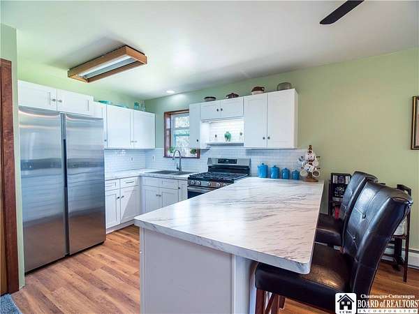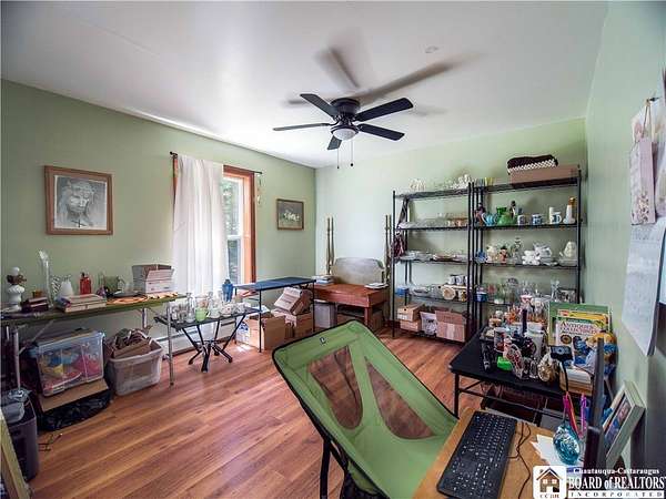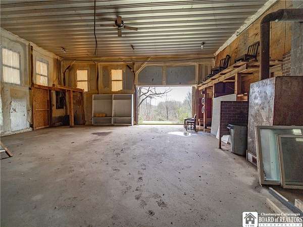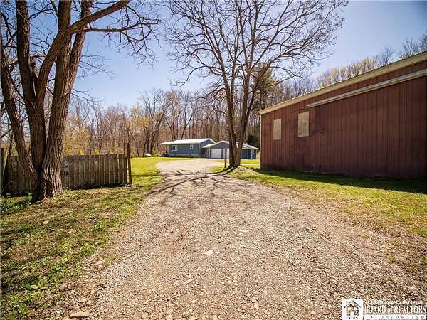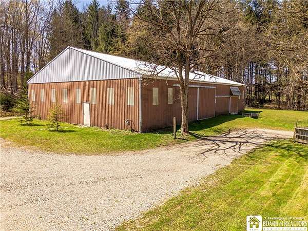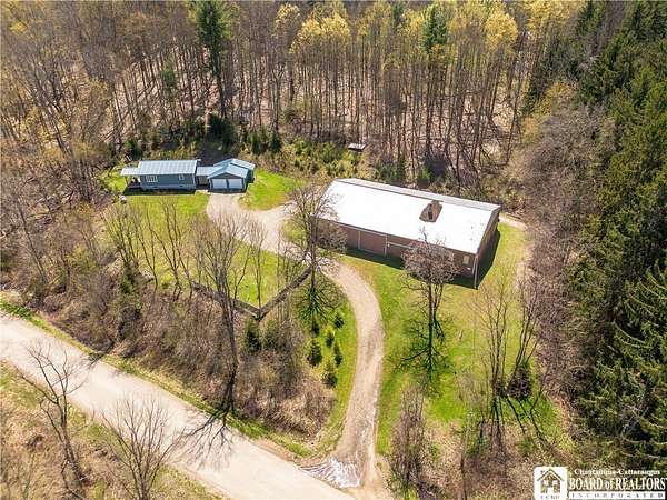 This property comfortably tucked away, boasts 6 acres of amazing views, trails and much more. Located only a mile away from Chautauqua Lake, the potential for this property is endless. A massive 5,760 square foot pole barn that once was home to a great business is incredibly spacious. For lake lovers it could be used for boat storage, really anything your heart desires. Located in Chautauqua Lake school district and close to the Chautauqua Institution for those here seasonally. The home that sits on this beautiful piece of land, is cozy and has been completely remodeled. New roof, flooring, kitchen, bathroom etc. With a spacious basement, and 2 car garage. This property is one of a kind! (5591 Eke Rd is a separate address included.)