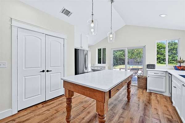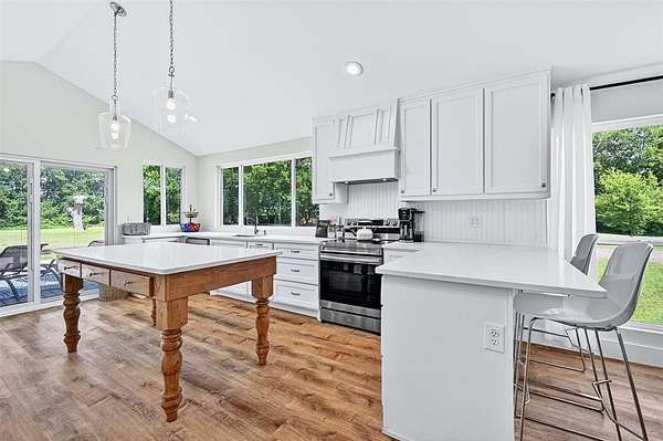 It has been COMPLETELY renovated and expanded to a 4-bedroom, 2-bathroom home in 2021. It balances its timeless beauty with modern-day comfort. Step inside to find warm natural light filtering through large windows, illuminating a space where every detail has been designed. The heart of the home features a beautifully customized kitchen with high-end finishes, including Quartz counter tops, custom cabinets, and large windows that offer the most peaceful serene views. These features flow throughout the entire house! The primary suite is a private retreat with peaceful views flowing seamlessly into the luxurious inspired bathroom.