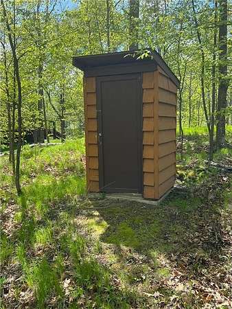 Property includes an outhouse, and bunkhouse/shed. Utilities are available near the property and road, including power, and fiber optic cable.