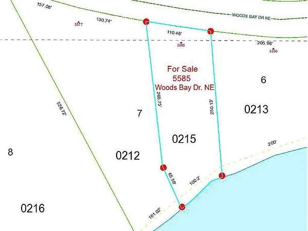 From Hwy #6 (near Outing), turn west (between mile-markers 38 & 39) onto Woods Bay Dr. NE for a distance of 2.1 miles to address sign #5585 on left.