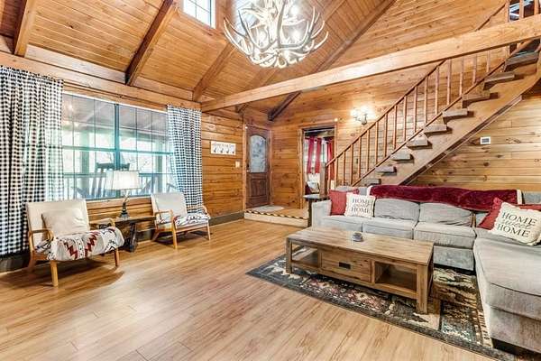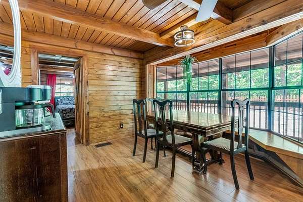 This charming log cabin offers 4 bedrooms, 2 bathrooms, and sits on a sprawling lot of 3.18 acres. Not included in the listed sqft is a 24x20 detached garage with heat, air, and electricity. With plenty of space both inside and out, this property provides a peaceful retreat while still being conveniently located near amenities and highways for easy access to surrounding areas. Home has a full wrap around porch, fire pit, and gazebo for those relaxing evenings. This home uses a grey water septic system and onsite propane as well as being outside city limits, allowing you to make it your own special getaway. This home is perfect for those seeking a quiet and private oasis to call their own or those looking for a 2nd home or investment property. As a successful short term rental the last 3 years, this home is being sold fully furnished. Great property manager and cleaner already in place. A turnkey property with cash flow opportunities! Owner can share financials with buyers, if needed.