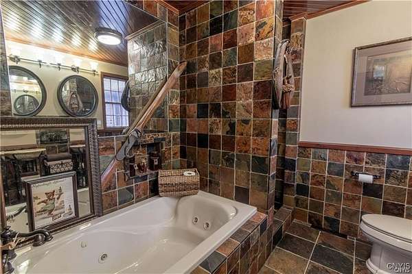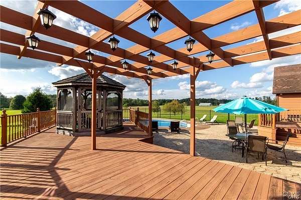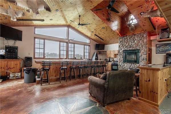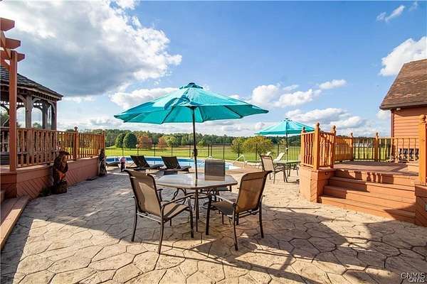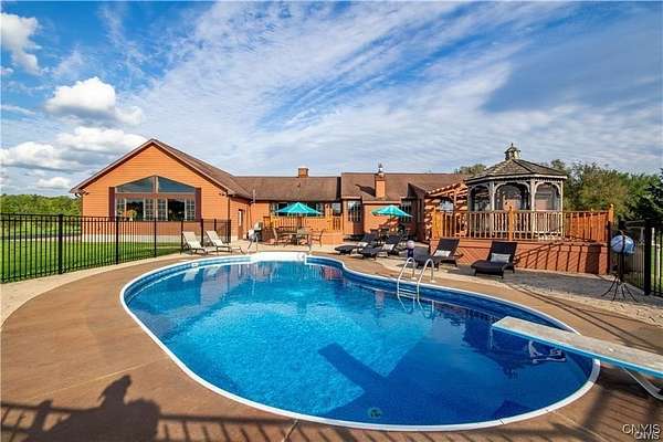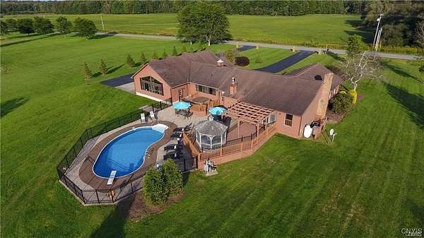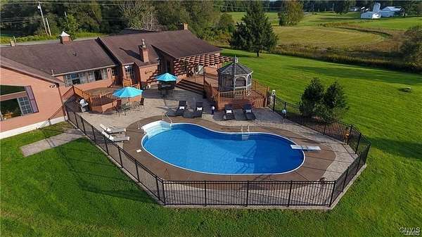 NOW INCLUDES 21 TOTAL ACRES! Welcome to your vacation paradise! This stunning 4-bedroom, 4.5-bathroom oasis spans an impressive 5,802 square feet, offering a luxurious and spacious living experience. Ideal for entertaining, the house features not one, but two fully equipped kitchens, large in door bar area, an in-ground pool (8ft deep), hot tub, stamped concrete patio with a gazebo overlooking the pond in a beautiful park like setting. A 14 X 24 Amish cabin (insulated, finished, gas heat & lights) sets at the back of the property in front of the pond (20-30ft deep stocked with catfish, largemouth bass, perch & rainbow trout) for that rustic feel. With its blend of luxury, functionality, and outdoor amenities, this home is an entertainer's paradise. Upstairs you'll find the guest quarters with a beautiful soaker tub. Sellers spared no expense in bringing the allure of South African tiles to the luxurious master bedroom bathroom. Don't miss the opportunity to make this exquisite property your own! Are you looking for more acreage? We have that too! Contact your agent for more details!