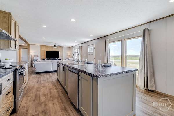 Charming country retreat on just over 2 acres offering peace, privacy, and scenic views! This beautifully designed 3-bedroom, 2-bath home features a desirable split floorplan and an open-concept layout connecting the living room, dining area, and kitchen-perfect for entertaining and everyday living. The spacious kitchen is a standout with a large island, sleek stainless steel appliances, plenty of oak styled cabinets and counter space, and separate dining area. An added feature being a laundry room with shelving and room for a 2nd fridge or more cabinetry. The tremendous primary suite features a modern double vanity and 2 walk in closets. While the additional bedrooms are generously sized on the opposite side of the home that share a large bathroom, also with a double vanity. Step outside and enjoy the quiet surroundings with plenty of room to roam, garden, or relax under the open sky. With a Vidalia onion farm located directly across the street, you'll enjoy unobstructed views and the assurance of no future development nearby. Centrally located to Metter, Statesboro, Vidalia, and Claxton for easy access to shopping, restaurants, and every day life. If you're looking for country living with modern comforts, this property offers the perfect blend of tranquility and convenience.