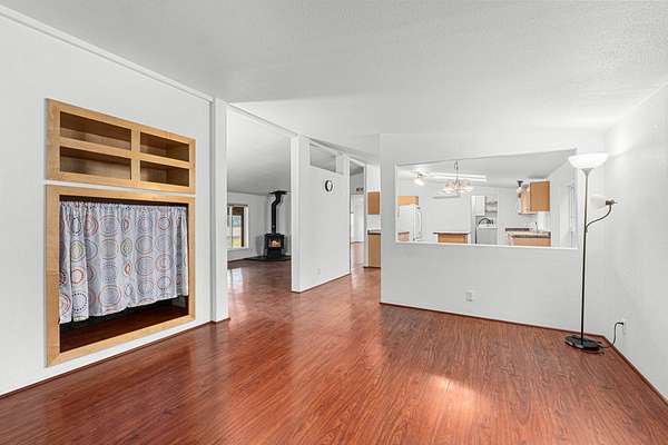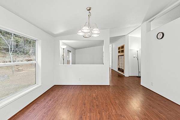 Experience the perfect blend of rural serenity and city convenience in this move-in-ready, three-bedroom, two-bath double-wide home. Nestled in a picturesque valley, the property offers stunning, unobstructed mountain views that provide a peaceful backdrop to your daily life. Cozy wood stove makes it easy to stay warm on these winter days. The home features a bright, convenient layout designed for modern living, ensuring every square foot is utilized effectively. Short and manageable driveway--a significant advantage during the snow season. RV hook ups make this property an easy place to host traveling friends. Clean, and waiting for its new owners, this charming residence is the valley haven you have been looking for.
