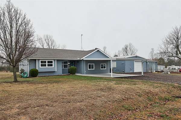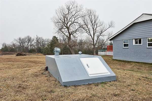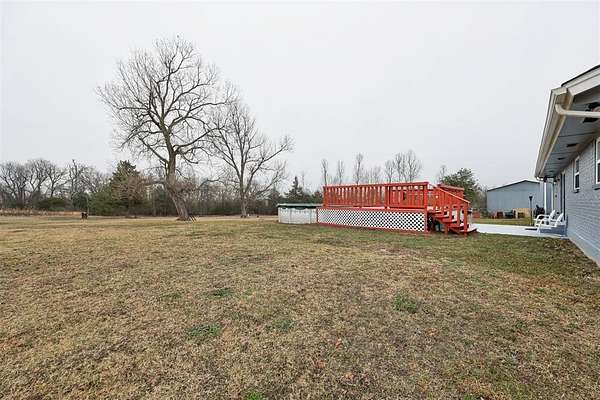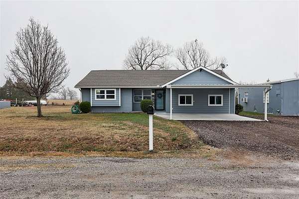 If you're searching for a home in a fantastic location with a beautiful yard and peaceful country charm, look no further! Nestled in the welcoming small town of Harrah, this newly updated 3-bedroom (or 2-bedroom plus bonus/rec room). 1.5-bath brick home offers 1513 square feet of comfortable living space on nearly 3 acres. Step outside and enjoy wide-open space complete with a 24x36 shop. above-ground pool, and storm shelter -- perfect for work. play. and peace of mind. Inside, you'll appreciate the many recent updates, including: Fresh interior and exterior paint New concrete driveway under the carport and new walkway New kitchen flooring and new carpet New windows throughout New' ceiling fans and light fixtures Updated plumbing New hot water tank and pressure tank With modern updates. functional space, and room to roam. this property offers the best of quiet country living with the convenience of town nearby. *There is another lot with 1.27 acres being sold with the home totaling 2.84 acres *