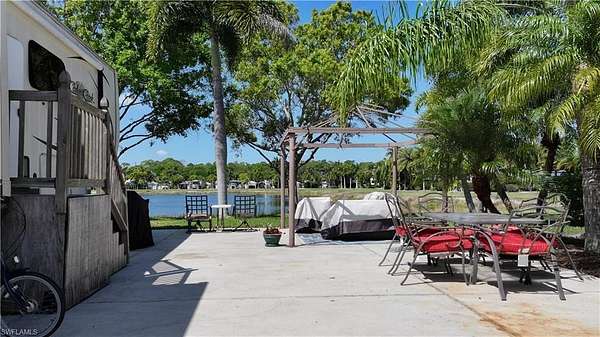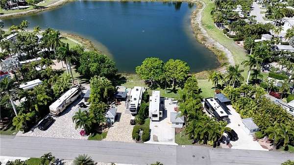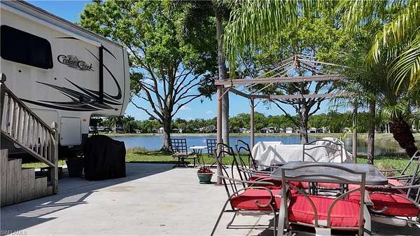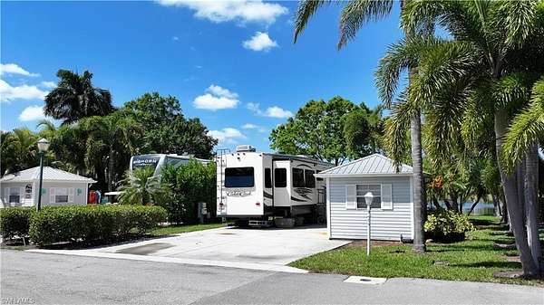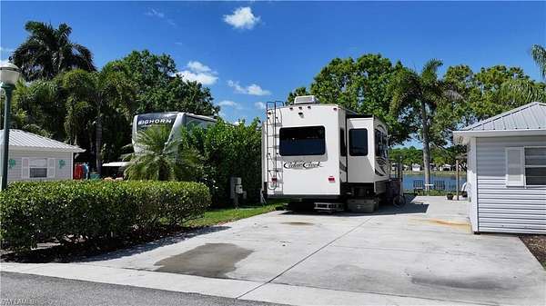 Welcome to Lot D58 in Cypress Woods RV Resort, a desirable lakefront property offering over 4,100 square feet of outdoor living space in one of Fort Myers' premier gated RV communities. This west-facing lot showcases breathtaking sunset views over the water, providing a peaceful and scenic backdrop for relaxing or entertaining. The property is thoughtfully positioned to maximize privacy, with the accessory building creating a more secluded outdoor living environment. The building is equipped with electric and sits on a solid concrete slab, offering flexibility for storage, workspace, or future customization. Mature trees provide a natural canopy, delivering comfortable afternoon shade and enhancing the lot's tranquil, tropical setting. The spacious layout allows ample room for your motorcoach along with outdoor seating and entertainment areas. This well-located lakefront property offers a unique combination of privacy, shade, and stunning water views, making it ideal for seasonal or full-time resort living. Residents of Cypress Woods enjoy access to resort-style amenities including pools, spas, fitness facilities, and an active social community, all conveniently located near Fort Myers' beaches, shopping, dining, and entertainment. Don't miss this opportunity to own a private, west-facing lakefront lot with exceptional sunset views in Cypress Woods RV Resort.