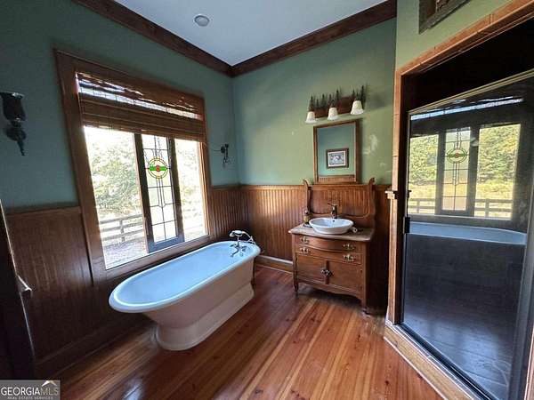 Experience timeless Southern elegance in this beautifully designed Antebellum-inspired home, built in 1990 set amid 36.27 acres of lovely countryside. This expansive residence offers 4 bedrooms and 4.5 bathrooms. Inside, you'll find rich hardwood and tile flooring, a grand entryway with staircase, and a spacious kitchen with solid-surface countertops and classic finishes-ideal for cooking and entertaining. A thoughtfully designed addition enhances functionality with a sunroom, lodge-style great room, loft, main-level bedroom and bath, basement storage and potential shelter, huge attic, and attached three-car garage. The great room features vaulted ceilings, exposed beams, and a striking stone fireplace, creating a warm, inviting gathering space. Outdoors features include spacious deck, multiple fenced pastures and a large barn with stables. The property also includes a charming 1960s ranch bungalow with 2 beds and 1 bath. The perfect blend of classic architecture with modern comfort.