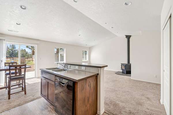 Six flat acres, at the front of the ranch, and just 13 miles from Redmond Airport affords rural tranquility without sacrificing convenience. This 2019 frame-built home offers a 2 car-attached garage, 3 bedrooms, and 2 full baths of airy living space anchored by vaulted ceilings, a breakfast bar and a cozy wood stove. The primary suite impresses with dual walk-in closets, and a large easy-access shower stall. The fenced backyard delivers the good life: patio, hot tub, garden space and fresh air. A sizable detached garage/shop with lean-to gives ample space for workshop or storage. Best of all? A deep private well means zero water bills - and Oregon's best tasting tap water straight from the source. Yard hydrants for a build or animals. Potential to build an ADU too! Come join Crooked River Ranch, offering rural residential living with a resort feel. Enjoy a golf course, pool, tennis/pickleball court, parks and playground, trails and public land access to river canyons just to name a few