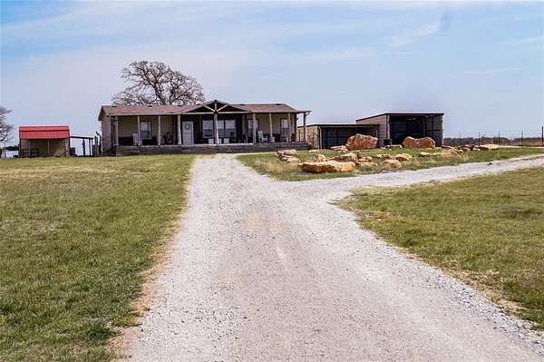 Escape to the country with this incredible fully fenced 40-acre property offering privacy, functionality, and endless possibilities-NO HOA and NO restrictions! This property is perfectly set up for livestock, hobbies, or a home-based business with multiple shops, barns, carports, and horse stalls already in place. Enjoy two scenic ponds and wide-open space, making this property ideal for ranching or simply soaking in peaceful rural living. A guest tiny home provides extra space for visitors, rental income, or multigenerational living. The main home features 3 bedrooms and 2 bathrooms with a spacious layout, including a large master suite with a walk-in closet (big closet) and an oversized bathroom connected to the primary bedroom. You'll also find a full pantry, dedicated laundry room, and comfortable living spaces throughout. The other two rooms and second full bath are on opposite of the house for split floorplan. Relax on the full-length covered front and back porches, perfect for enjoying Oklahoma sunsets. A 2,100 sq ft shop with an additional drive-through extension is ideal for trailers, RVs, equipment, or workshop space. An in-ground saltwater pool has already been started-with plumbing, piping, and pump installed-just needing concrete and dirt work to complete your backyard oasis. This one-of-a-kind property combines space, versatility, and opportunity-don't miss your chance to own a true Oklahoma homestead!