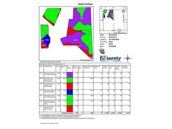 Rare opportunity to own 160 acres in Eden Township, just minutes from Jasper! This diverse property features 82.53 acres of tillable farmland, approximately 69 acres of pasture, a 7-acre building site, and an established Pipestone rock quarry--offering excellent income potential. The building site includes two homes and two pole sheds, providing great utility and flexibility for farming or rental. The farmland and pasture are currently rented for 2025, ensuring immediate return on investment. The pipestone quarry has historically generated revenue. The property sits on the rich quartzite ledge--and has a potential for mining. Don't miss the drone video showcasing this unique property. Selling as a whole--an incredible opportunity for investors, producers, or anyone seeking a versatile land parcel with income streams already in place.