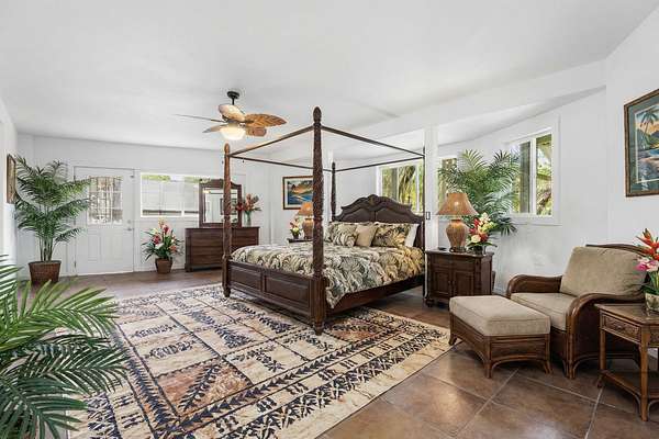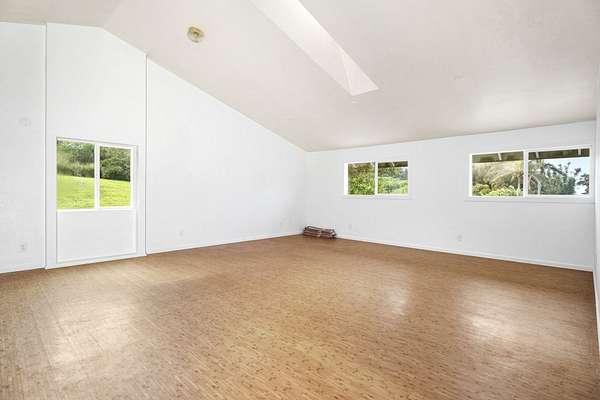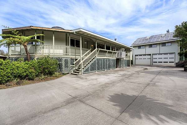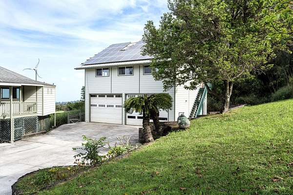 Nestled at the end of a quiet cul-de-sac in peaceful Hawi, this unique 3 bed, 3.5 bath, 3,164 sq. ft. residence offers privacy, ocean views, and a flexible layout perfect for those seeking space, creativity, and connection to nature. Surrounded by mature trees, the property feels secluded while remaining just minutes from town amenities. The two-story main home is architecturally striking, designed as two interlocking octagons, maximizing natural light and airflow. Inside, you'll find an updated kitchen with cherry cabinetry and a gas stove, a bonus room ideal for an office or studio, and two ensuite bedrooms-including one with a bathroom featuring a roll-in-style shower with ample clearance that may accommodate wheelchair access. Buyer to verify suitability for their specific needs. A fireplace in the primary suite, multiple skylights, and solar power add warmth, efficiency, and island charm. An exterior lift provides alternate access to the second floor. Above the oversized garage/workshop, a 1 bed / 1 bath apartment offers vaulted ceilings, skylights, and a full kitchen. A separate unpermitted one-room "cottage" with its own bathroom offers additional flexibility as an office, retreat space, or overflow quarters. With 2.36 acres of usable land, endless potential for projects, and a rare sense of peaceful seclusion, this Hawi property is a true Big Island gem.
