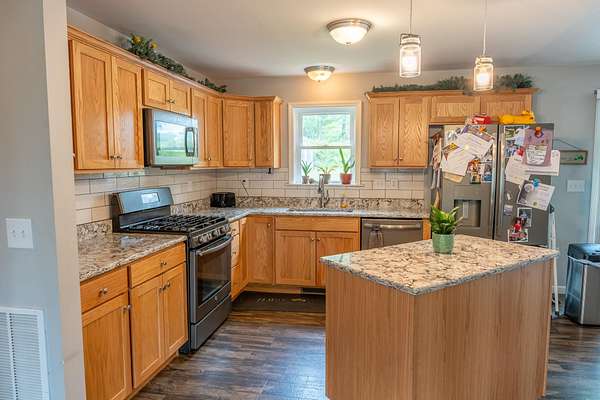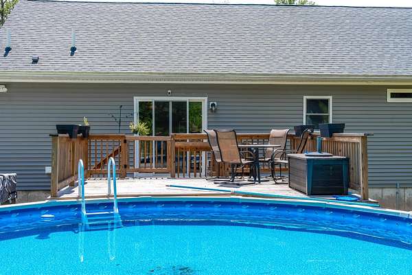 Step through the side entrance into a functional mudroom that opens up to a bright and airy kitchen and living space -- perfect for entertaining or everyday comfort. Enjoy warm summer days in the above-ground pool just off the back deck, then unwind in the hot tub under the stars. Outdoor living is a breeze with a convenient propane grill hookup that runs directly from the home's heating tank.
