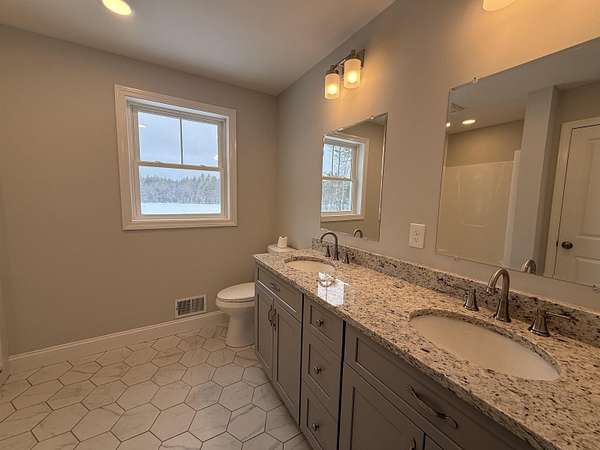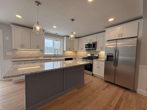 New Construction Home ready for immediate occupancy! This great new 3 bedroom 2.5 bath home is situated on a very private 2.6 acre lot that overlooks Beaver Pond! Home features Hardwood flooring throughout the first floor, stairs to the second and upstairs hall, kitchen has Stainless steel appliances, granite counter tops, can lighting, under cabinet lights, a large island and a farmers sink all open to the living room as well as a dining room. You have tile in all the bath rooms, dual sinks in both the primary and spare upstairs baths, the primary has a cathedral ceiling 2 walk in closets and a huge bath. You also have a side walk out basement, a insulated and sheet rocked oversized 26x28 2 car garage, a 16x20 deck, a lamp post and a paved driveway.