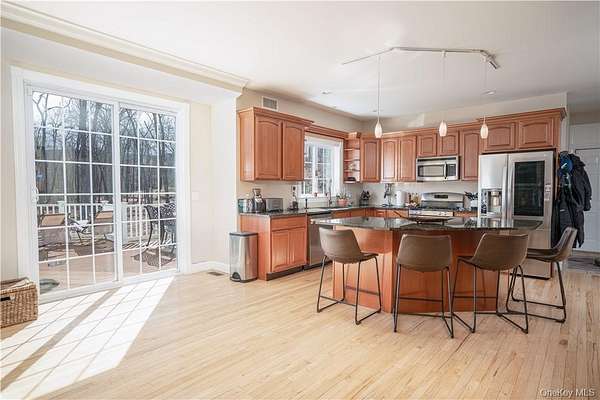 "THE MEADOW"- Looking for the perfect private escape? This is an incredible opportunity to rent a fully furnished striking colonial tucked away on a tranquil 3.6 acre park-like lot complete with serene man made pond only 50 minutes north of NYC in Tuxedo NY. Surround yourself with all of the breathtaking natural beauty of the Hudson Valley and all of the amenities it affords. Just minutes to multiple hiking/biking trails, state parks, orchards and the fabled Renaissance Fair. 56 Benjamin Meadow Road offers tenants an unparalleled lifestyle with almost 3000 SF of immaculately maintained living space enveloped by enchanting forests. The 4 bedroom 2.5 bathroom residence boasts a spacious entry foyer and expansive open floor plan on the main level. A chef's eat-in kitchen highlights stainless steel appliances, granite countertops and island perfect for entertaining. Glass sliding doors off of the kitchen open up to the back deck capturing gorgeous water views of the surrounding landscape and pond below. The primary suite features dramatic cathedral ceilings and walk-in closet with oversized bathroom. More amenities include pool table, sauna, 2-car attached garage and full walk-out basement for additional storage or home gym. The home even comes with your very own chicken coop! Located just 15 minutes from the Tuxedo train station and only 50 minutes from NYC. Inquire about pets. Available for occupancy Feb 1st.