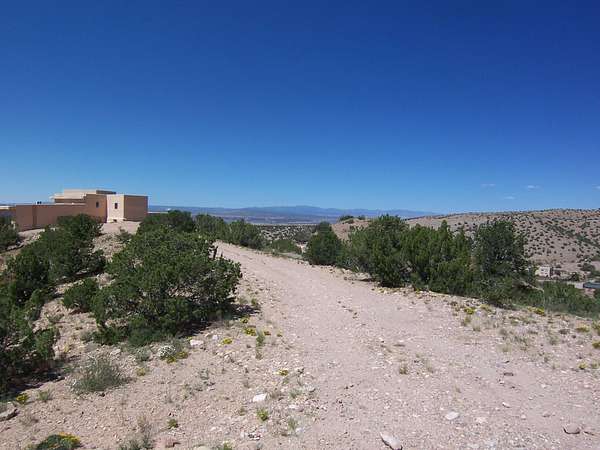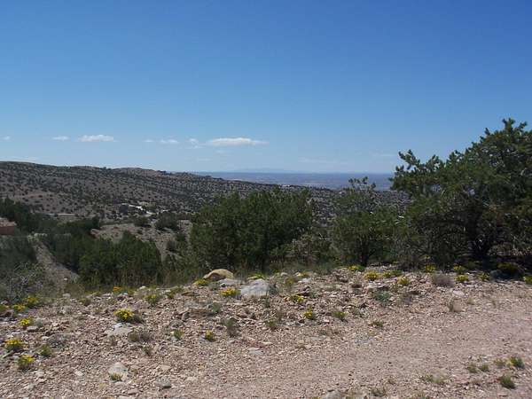 From I-25 Placitas Exit (242), go east on Highway 165 for 6.5 miles. Turn left on Camino de las Huertas and go 1 mile, then bear right on Camino de las Brisas. Go 1/4 mile and continue up the hill to the top of the ridge. Bear left and go past house #52 and the lot is on the right at the corner of Calle Sabina.