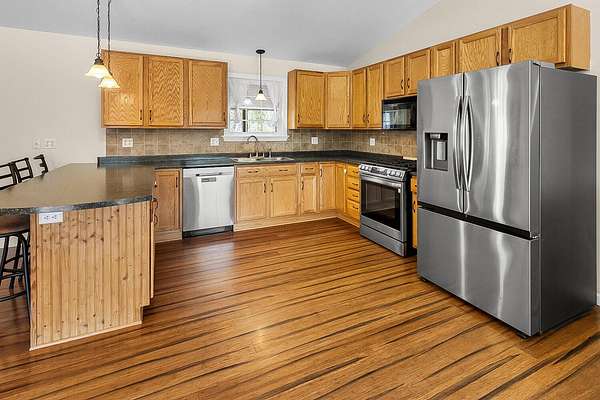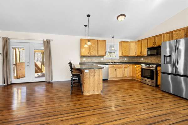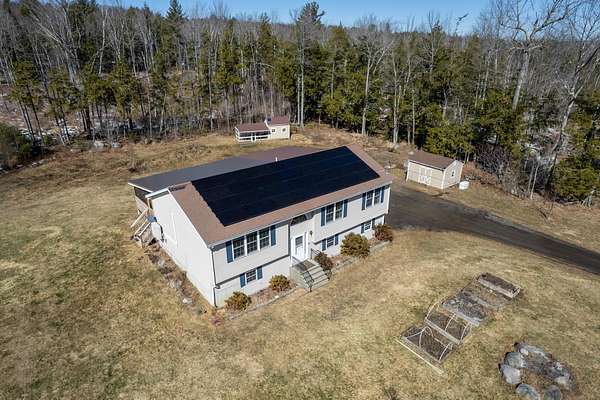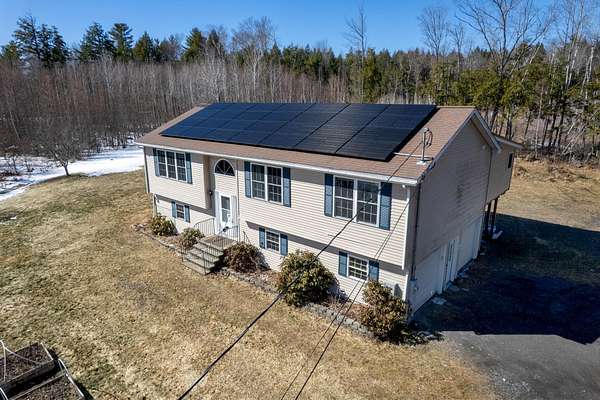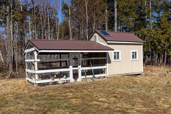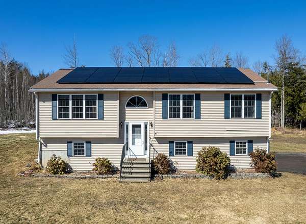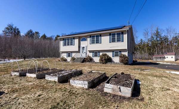 Charming Country Retreat with Deeded Access to Pushaw Lake! Homesteading paradise awaits! Grab your boat and come on down! Nestled on a sprawling 13 acres, this sun filled, 3-bedroom, 2-bathroom home offers a perfect blend of comfort, privacy, and outdoor adventure. With deeded access to Pushaw Lake and a wealth of other amazing features, this property is truly a rare find. Open-concept living! The kitchen, dining and living room area boasts cathedral ceilings, creating a bright and airy space. A French door leads to a large screened in porch, perfect for entertaining or enjoying the tranquil views of your private backyard. A large Primary en-suite bedroom has a heat pump and additional closet spaces. A private entrance from the primary provides easy access to the porch. 2 more bedrooms offer creative uses for home office spaces if needed, are good sized and SUN filled! The laundry is conveniently located in the bedroom wing.... Right where you need it! A large bonus room with a built-in bar area is ideal for gatherings and relaxation. The bamboo flooring throughout the home adds a touch of elegance and durability. Equipped with solar panels, this home offers low or even NO energy bills! Additionally, you'll enjoy the warmth of radiant floors, oil heat and the comfort of two heat pumps, ensuring year-round coziness. A 2-car attached garage with direct entry to the living area, while a storage shed provides ample space for all your outdoor toys and equipment. In addition to the access to the lake, the private property features established maple trees, ready for tapping, blueberry bushes, raised beds with fantastic composted soil and a variety of fruit trees for your enjoyment. The chicken coop also has solar panels provides a unique opportunity for farm-fresh eggs year-round. This home has been thoughtfully updated throughout, ensuring modern comforts and style. Exceptional property, best of country living near town!