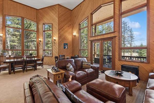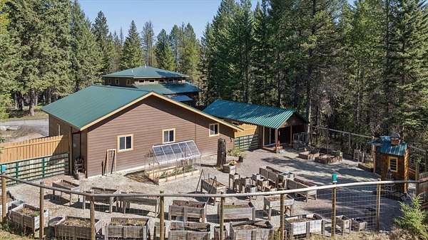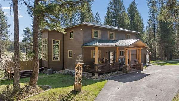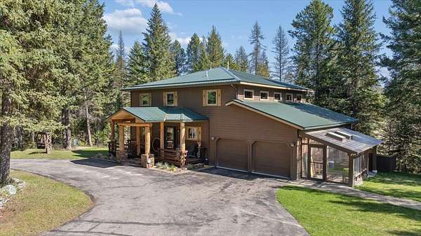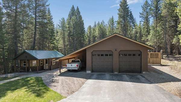 Set on 7.85 wooded acres just minutes from downtown Whitefish, this 3-bedroom, 3-bath property offers a rare combination of privacy, usable land, and open meadow views. Surrounded by natural landscape, the setting provides a sense of space and quiet with wildlife activity and amazing views. Inside, large windows bring in natural light and frame the surrounding scenery, creating a seamless connection to the outdoors. The home has been updated for comfortable living, and a whole house natural gas generator provides added reliability. The property is well equipped for a variety of uses, featuring an attached 2-car garage plus a detached oversized 2-car garage with additional carport, providing plenty of space for vehicles, equipment and storage. Outdoor amenities also include a greenhouse with fenced garden beds and additional outbuildings, including a workshop and artist bungalow, ideal for workspace, hobbies, or flexible use. The acreage allows room to expand and explore, and includes a recreation easement through a neighboring 80-acre parcel providing access to a private trail system leading to Blanchard Lake. A unique opportunity to experience space, privacy, and the natural surroundings of the Whitefish area, while remaining conveniently close to town amenities.