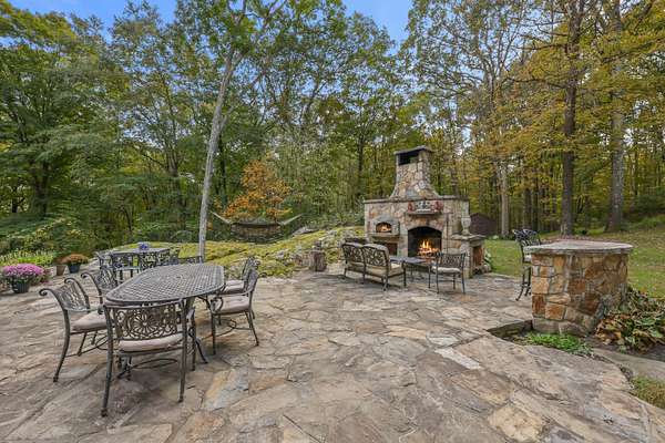Experience the epitome of tranquility in this country retreat, nestled on over 18 acres of paradise.Adjacent to the sprawling 100+ acres of Samuel E. Hill Little River Nature Preserve and Robins Trail, this home is the perfect oasis.As you enter the main level, you immediately feel the rustic charm.The 1st floor includes a cozy bedroom, a sunlit family room, a kitchen, and a dining room.The 4 interior fireplaces -one in the kitchen- are perfect for relaxing during the winter months.On the 2nd level, you'll find the primary suite, with its own private balcony where you can immerse yourself in the calming sounds of nature.With 3 additional bedrooms & 3 full baths, this home offers ample space.The private backyard features a natural landscape, allowing you to enjoy nature at its finest.A custom-built fireplace, pizza oven, & bar top make this outdoor space ideal for entertaining.You can also indulge in cross-country skiing, hiking, and snowshoeing directly from your backyard!Located approx 90 mins from NYC & less than 10 mins from the renowned Georgetown area of Redding -with its bustling restaurants- and the easily accessible Branchville Train Station, this property offers both tranquility and convenience.Come experience the warmth and character of this home in person, it's something that can only be truly appreciated through a visit.Don't miss the 3-car detached garage with a legal apartment above, perfect for use as an office, an in-law apartment, or income producing rental.