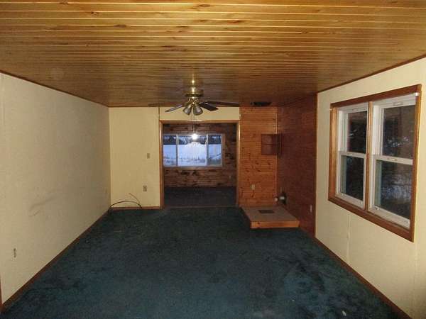 56 Danyow Drive in Addison, Vermont is a 1,664 sq. ft., single-level home situated on 10 acres. The property is located off Route 22A and includes mountain views. The home is set on a slab foundation with a crawl space. The interior layout includes a front laundry and utility room, a kitchen area, two bedrooms, a full bathroom, and a combined living room/dining room. At the back of the home, there is an additional wood-sided bedroom with a separate entrance. The property includes existing deck and porch structures that require attention. The home has three bedrooms and one full bathroom in total. The acreage surrounding the home offers open space and a rural setting consistent with the Addison area. Access to the property is directly off route 22A. Property is being sold AS-IS. Seller and agency have no knowledge of systems. Buyer and their agents are responsible for verifying all data