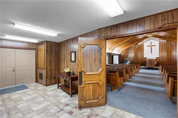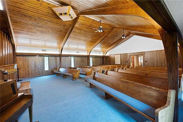 An incredible value and extraordinary opportunity await with this custom-built 3,212 sq ft church on +- 7 acres. Highlighted by soaring Gothic arches, handcrafted pews, and a beautifully designed pulpit, this property radiates spiritual beauty and architectural elegance.