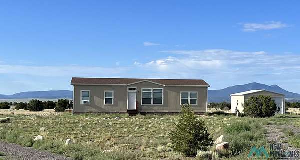 New Home Featuring Exceptional Views This spacious Champion ranch-style home offers three bedrooms and two bathrooms on 12.5 acres, presenting scenic mountain views and a thoughtful split floor plan. The residence includes a generous master bedroom with ensuite bath and boasts 9-foot ceilings throughout. Key features include a 12-gallon-per-minute well, 200-amp electrical service, buried electrical lines, whole-house surge protection, a 120-gallon propane tank, and a 40-gallon water heater. The modern kitchen is equipped with a powered island and a walk-in hidden pantry. Outdoor amenities consist of a 12x10 deck accessible from the rear bedroom or office, a 12x16 patio slab, and a wired 20x20 garage. A .5 acre fenced in with a 10 gate makes a perfect backyard area for animals. Located approximately three miles from Highway 60 off Omega Road, the property benefits from county-maintained year-round access. The driveway and surrounding area have been professionally graveled. Situated in a region renowned for its Bortle 1 dark skies, this property is ideally suited for amateur and professional astronomers alike. Approximately 12 miles from the small town of Quemado where you will find fuel, supplies, two restaurants, and the school. The proximity to Quemado ensures access to essential services and a small-town charm, while the surrounding landscape offers abundant opportunities for outdoor enthusiasts to explore hiking, hunting, and stargazing. Land Owners' Association for maintenance of the roads within the subdivision. Covenants provided upon request. Contact New Mexico West Properties for covenants, information, and to schedule an appointment. Whether you're seeking solitude or the perfect spot to enjoy breathtaking sunsets, this land offers a unique blend of natural beauty and convenience.