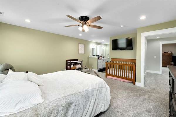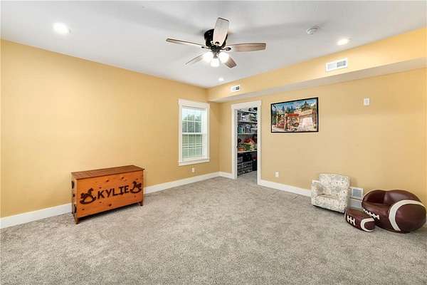 - Ceiling Fan(s), Custom Cabinets, Kitchen Island, Painted Cabinets, Pantry, Vaulted Ceiling(s), Walk-In Closet(s)