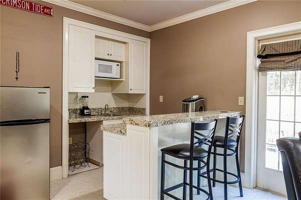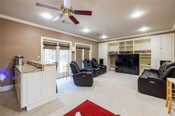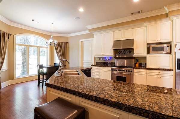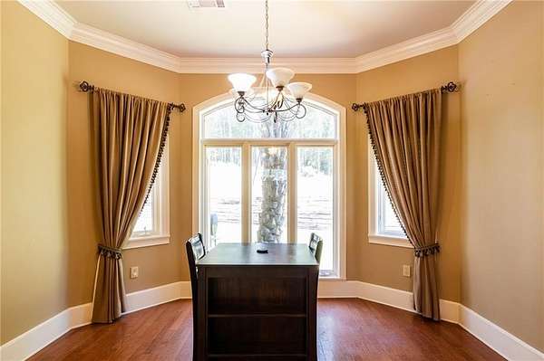 Exceptional home with water view of Lake Talisi. This custom built 4-bedroom 3.5 bath home offers over 4200 square feet of open living space sitting on 4 acres of land with a fresh spring of water. If you love to cook, you will enjoy the kitchen that features granite countertops and stainless-steel appliances including a 6-burner gas stove. The kitchens spacious island flows into the breakfast and living areas so entertaining is delightfully engaging. The living area highlights a gas fireplace and plenty of bookshelves with an installed speaker system that follows throughout the home. As you move into the master suite you will find another gas fireplace that illuminates the trey ceilings and doors that open to the hot tub and a sauna. If that isn't enough the master bath has a jetted tub and a separate shower with a double vanity and large closets. Also, you will find upstairs a theater room with a wet bar that opens to an outside deck overlooking the property. This magnificent home is only 2.5 miles from Lake Talisi boat ramp and 30-minute drive to Auburn.
