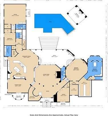 The most impressive part of this estate may just be the backyard and pool. The high ceilings of the portico provide a stunning venue from which to enjoy the saltwater pool, fountains, hot tub, cabana and views of the protected preserve beyond the manicured yard. The left side of the house features a porte-cochere, plenty of storage and off-street parking.