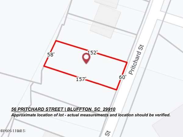 The Vacant Lot at 56 Pritchard Street is the perfect location to work where you live in the Old Towne Bluffton Historic District. A $2 million project called the Pritchard Street Streetscape and Drainage Project is underway. The project will include new drainage infrastructure, new Sidewalks, ADA compliant pedestrian features, traffic calming measures, new streetscaping and new lighting. The improvements will define Pritchard Steet as an integral part of the Historic District and is likely to increase property values. The Neighborhood General Historic District allows Moderate-Density Residential Use with limited Commercial uses making Pritchard Street a great location for a Residential/Professional improvement. Zoning allows a main residential structure and separate Carriage House. Approximate lot dimensions 60' X 165' X 64' X 157' (.224 AC). Just a short walk to shops and restaurants in the Olde Towne Historic District; the Pocket Park on the May River at the end of Pritchard Street; and the waterfront park on the May River. A complete set of plans for a 2700+ s/f 2-story House and a detached Carriage House with full apartment for rental income is available. Plans were fully approved by the Town of Bluffton, but the approval has expired and would need to be renewed. Seller is a SCLR.