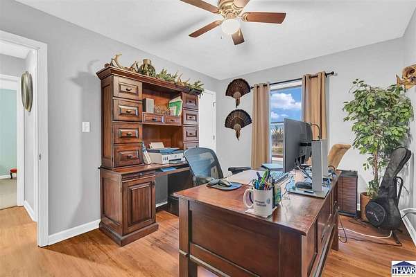 - Carpet, Casual Dining, Ceiling Fan(s), Counter Tops Granite, Dining Bar, Garage Door Opener, Main Floor Primary Suite, Smoke Detector, Split Bedroom Floor Plan, Vinyl Floors, Walk in Closet, Window Coverings